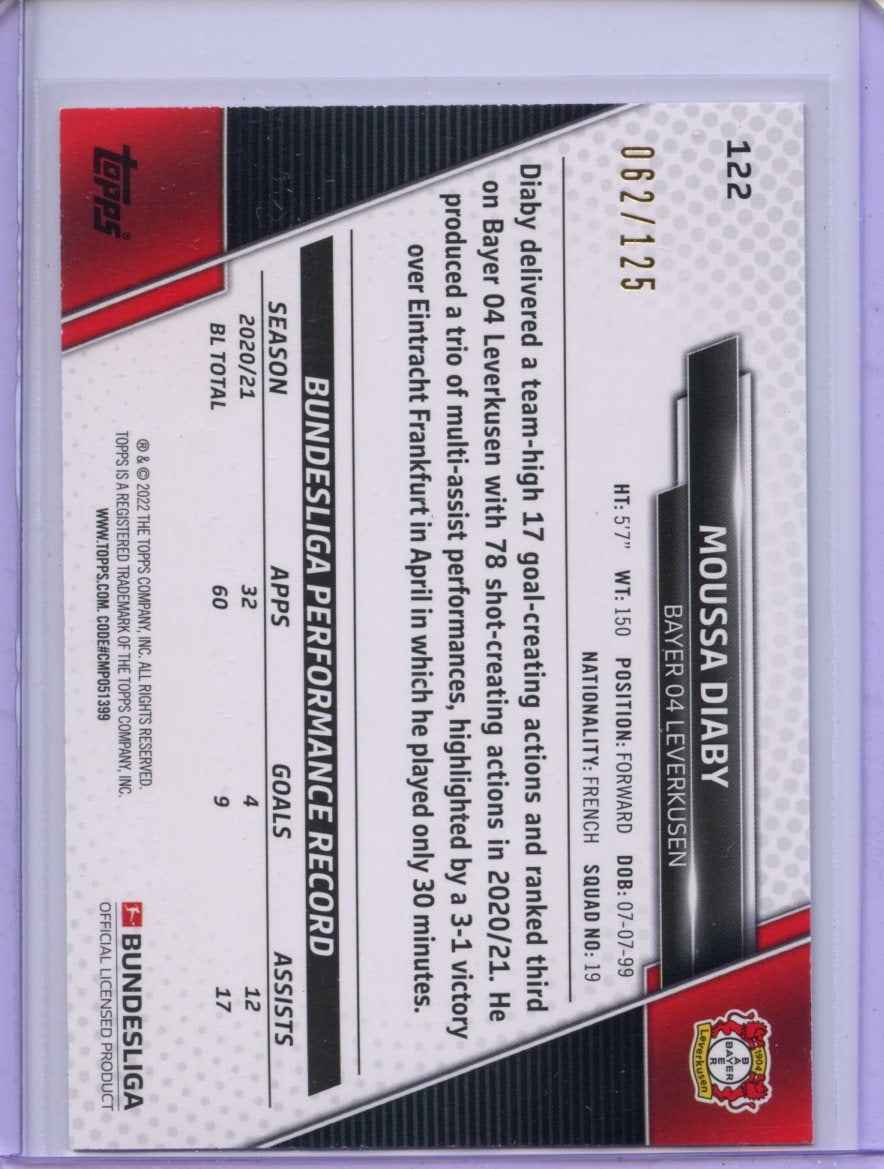 2021-22 Topps Bundesliga Soccer Moussa Diaby Fuchsia Foil 62/125 #122