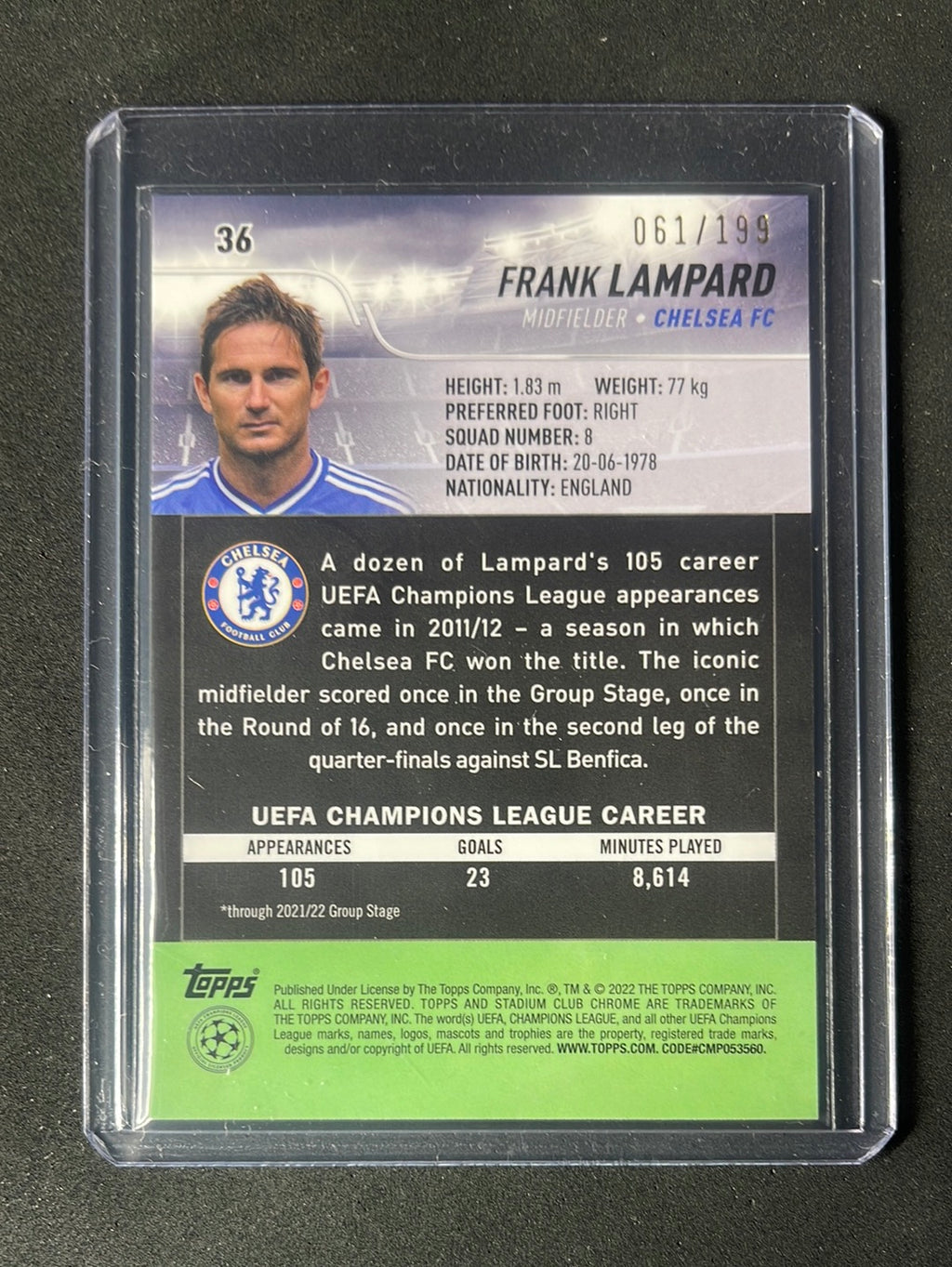 2021-22 Topps Stadium Club Chrome UEFA Champions League Frank Lampard Aqua/Green Electric Charge Refractor 61/199 #36