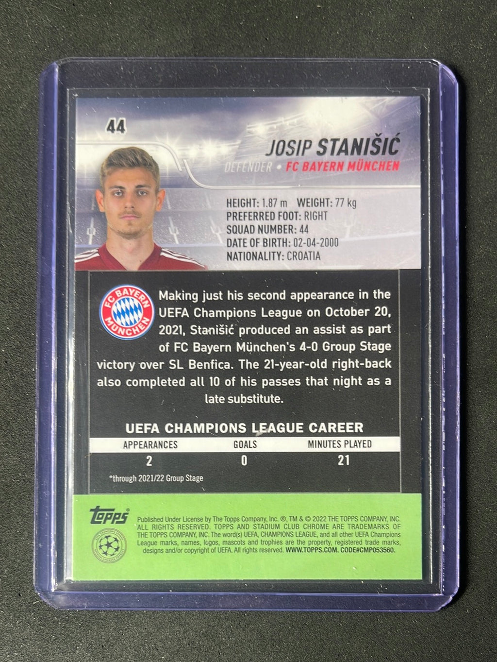 2021-22 Topps Stadium Club Chrome UEFA Champions League Josip Stanisic Pink/Red Electric Charge Refractor #44