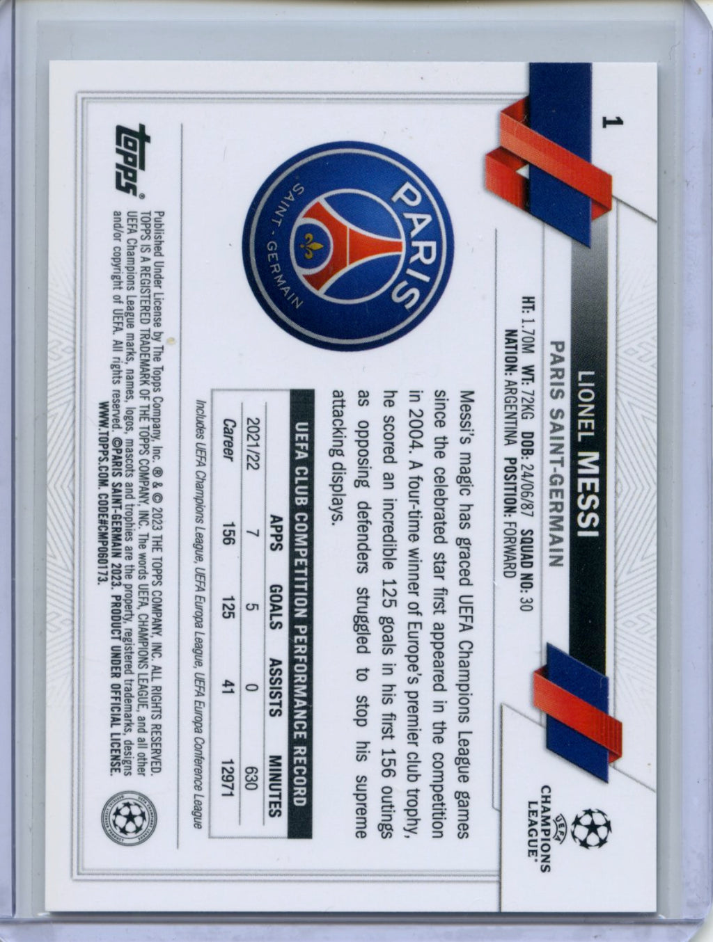 2022-23 Topps Chrome UEFA Club Competitions Lionel Messi #1