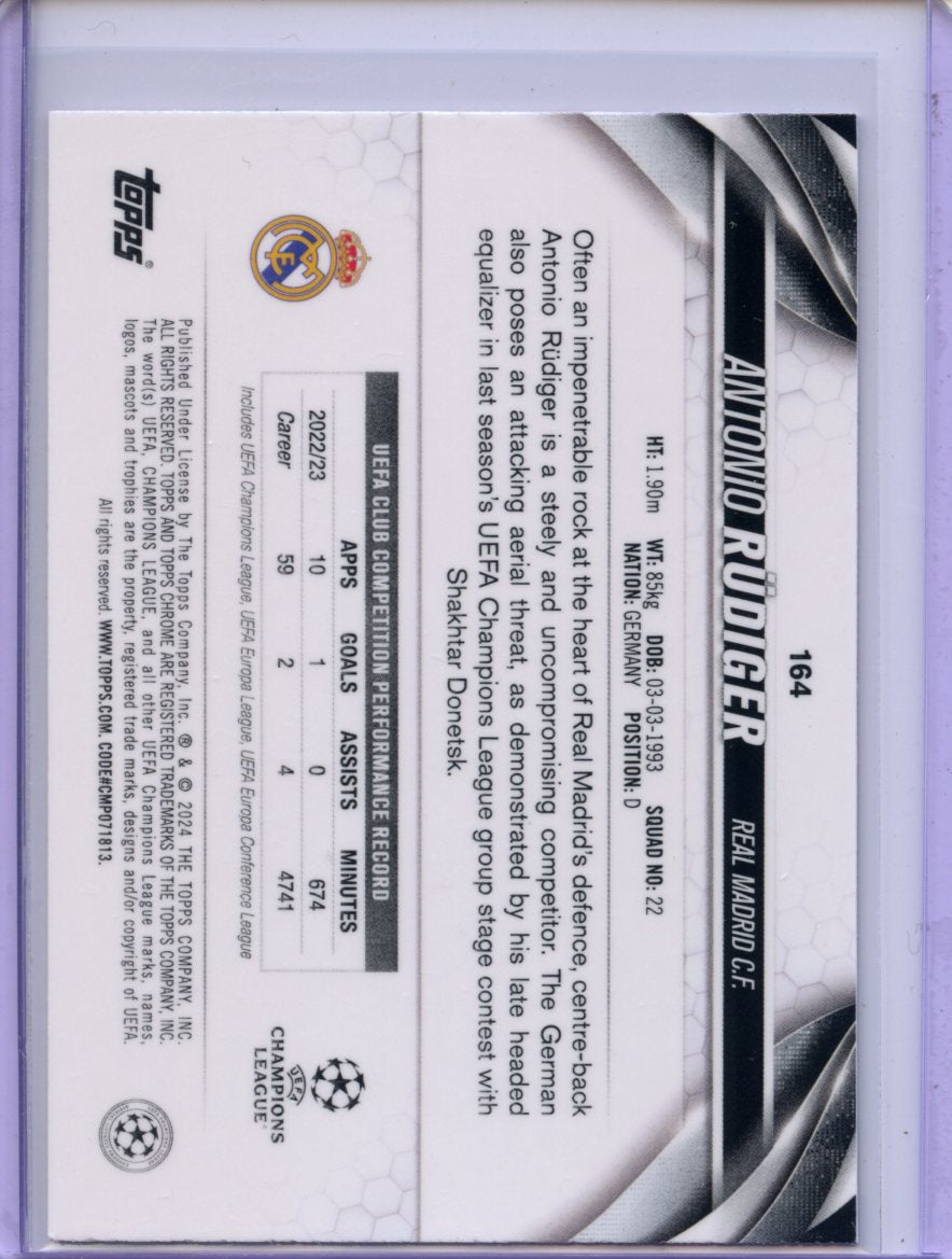 2023-24 Topps Chrome UEFA Antonio Rudiger Magenta Prism 14/99 #164