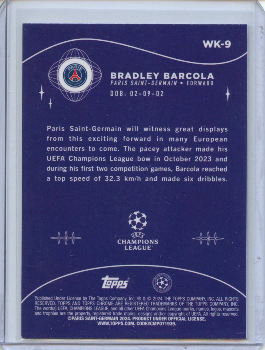 2023-24 Topps Chrome UEFA Bradley Barcola Wonderkids #WK-9
