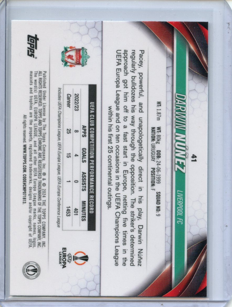 2023-24 Topps Chrome UEFA Darwin Nunez Aqua Prism Refractor #41