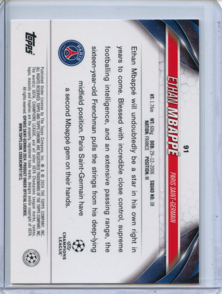 2023-24 Topps Chrome UEFA Ethan Mbappe Pulsar Refractor #91
