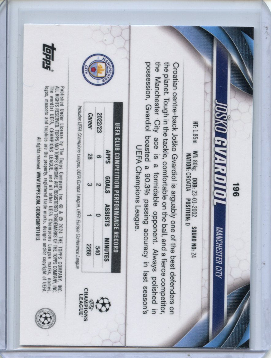 2023-24 Topps Chrome UEFA Josko Gvardiol Aqua Prism Refractor #196
