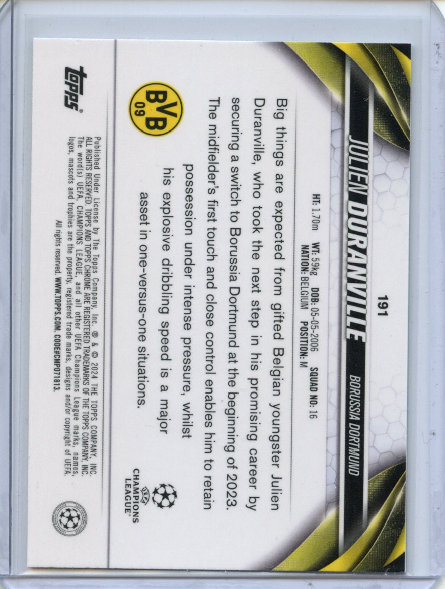 2023-24 Topps Chrome UEFA Julien Duranville Aqua Prism Refractor #191