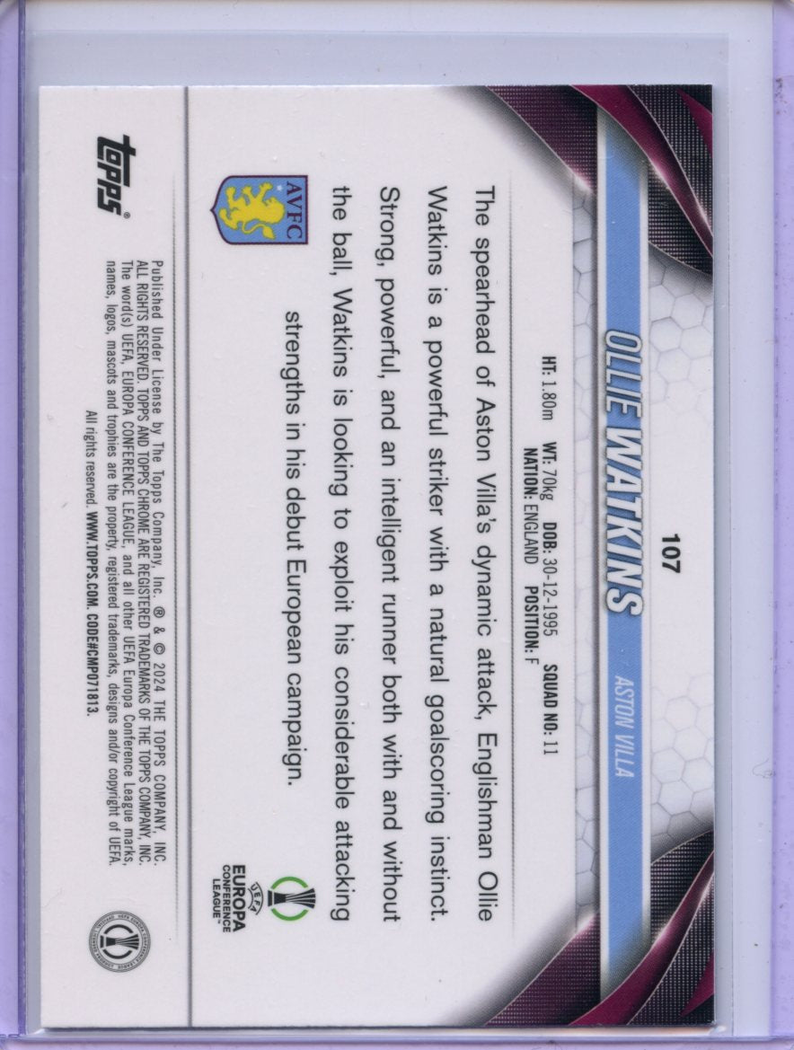 2023-24 Topps Chrome UEFA Ollie Watkins Aqua Wave Refractor 15/199 #107