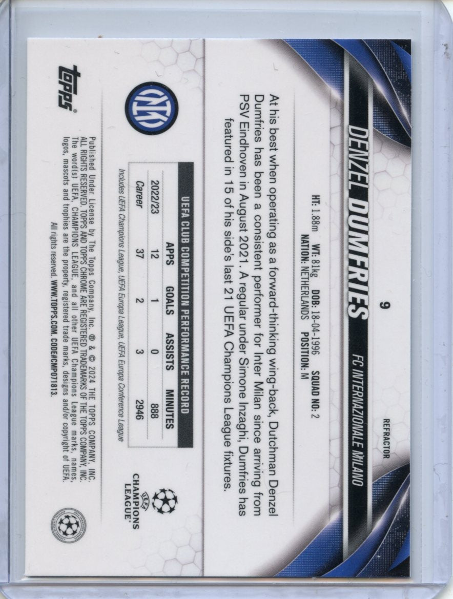 2023-24 Topps Chrome UEFA Denzel Dumfries Refractor #9