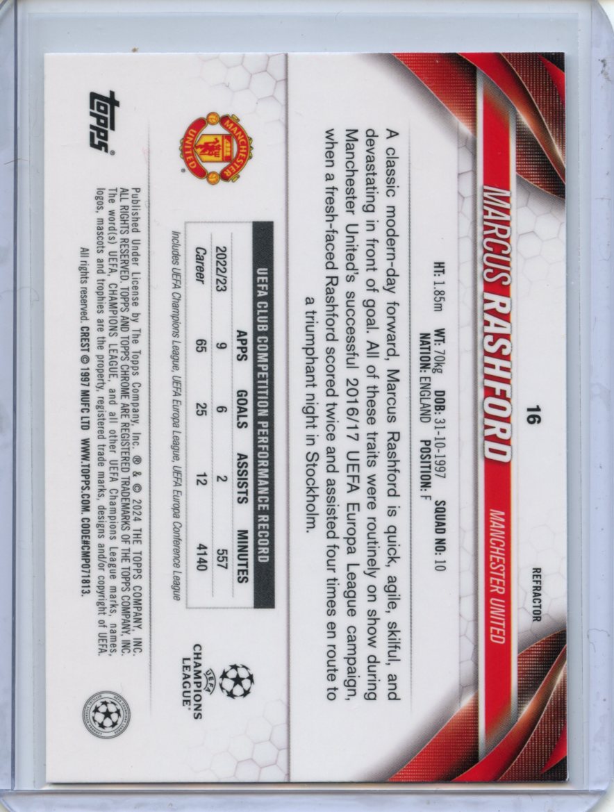 2023-24 Topps Chrome UEFA Marcus Rashford Refractor #16