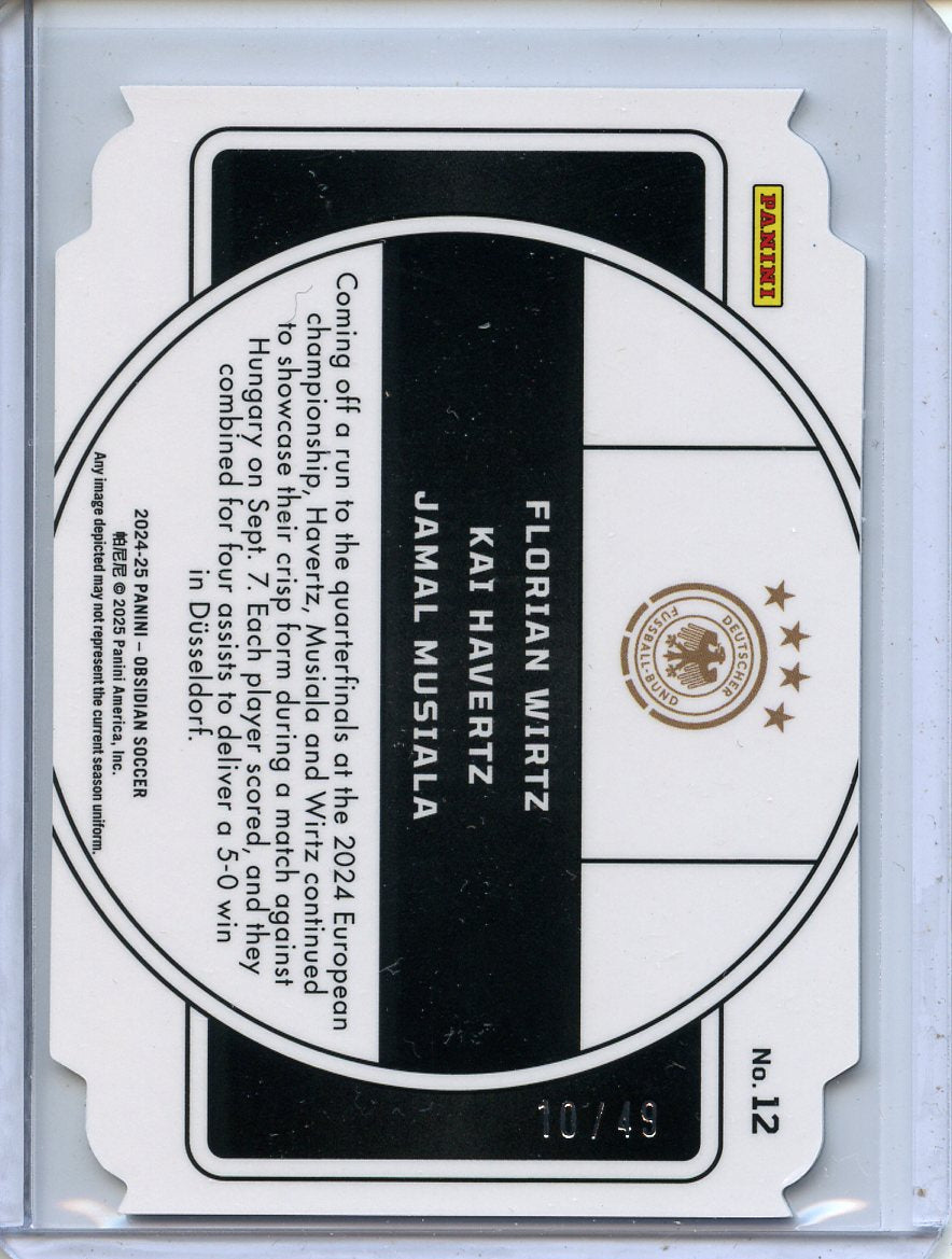 2024-25 Obsidian Soccer Kai Havertz/Florian Wirtz/Jamal Musiala Nucleus Purple 10/49 #12