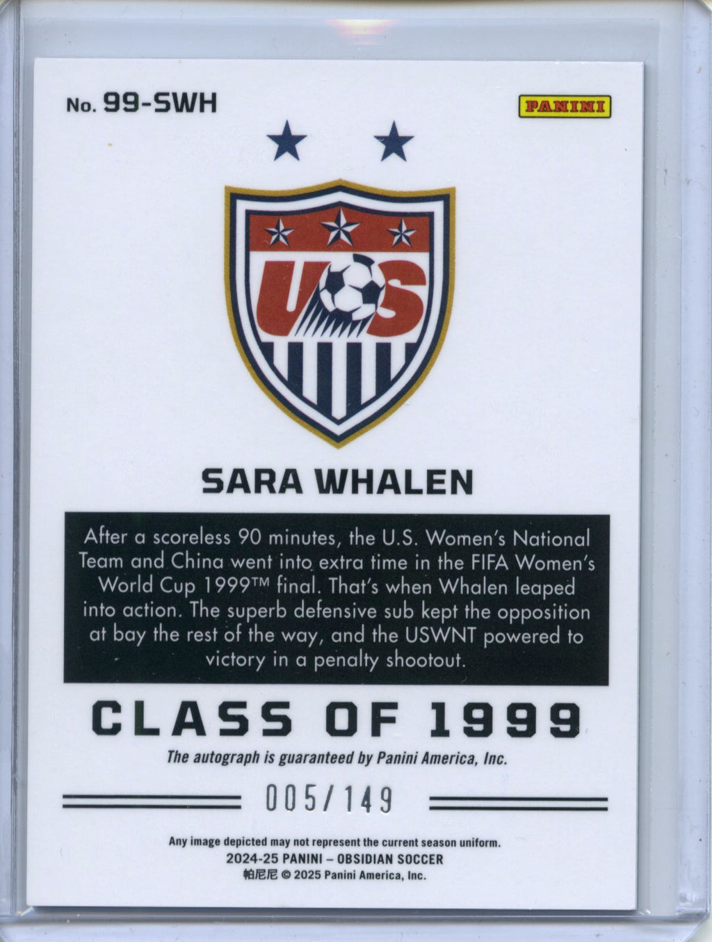 2024-25 Obsidian Soccer Sara Whalen USWNT Class Of 99 Electric Etch Orange 5/149 #99-SSWH