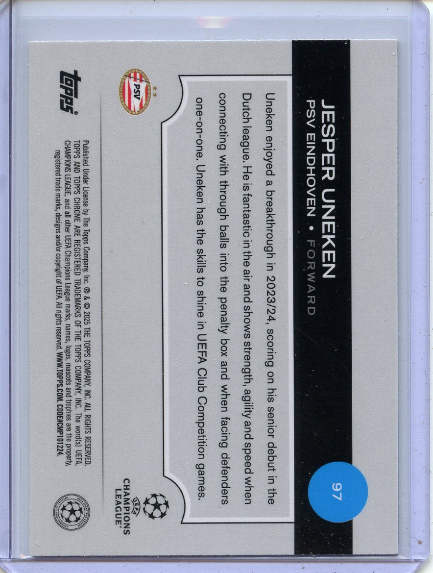 2024-25 Topps Chrome Sapphire UEFA Club Comps Jesper Uneken Yellow 8/75 #97