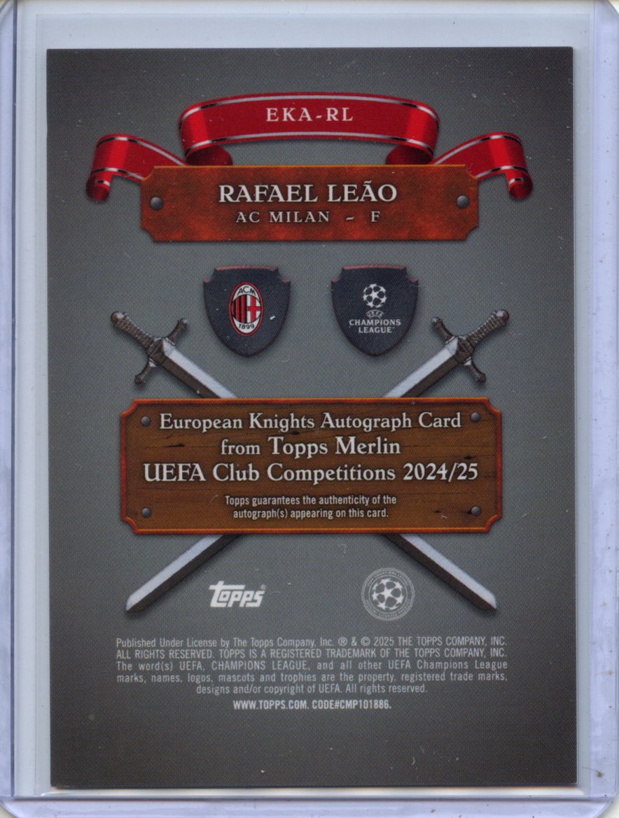 2024-25 Topps Merlin UEFA Club Comps Rafael Leao European Knights Autographs Gold 16/50 #EKA-RL