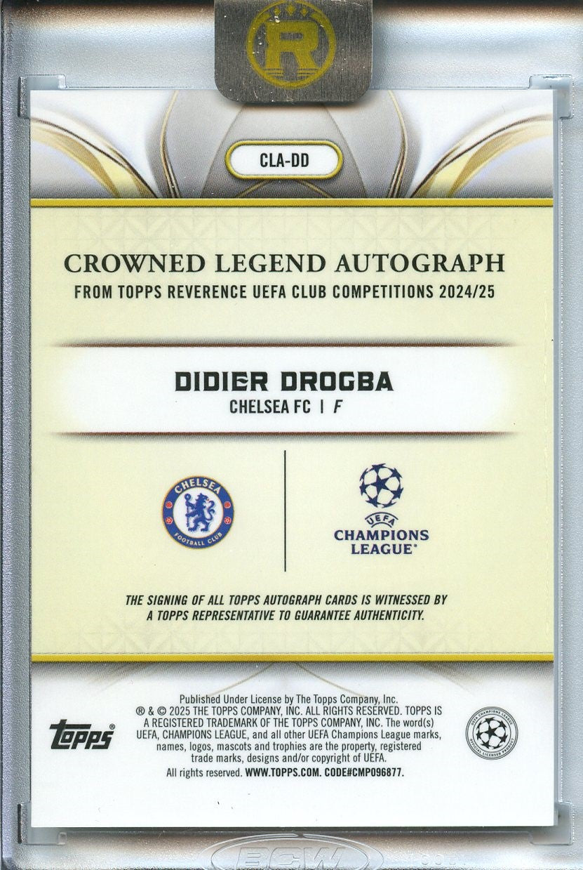 2024-25 Topps Reverence UEFA Club Comps Didier Drogba Crowned Legend Autographs Blue 11/75 #CLA-DD