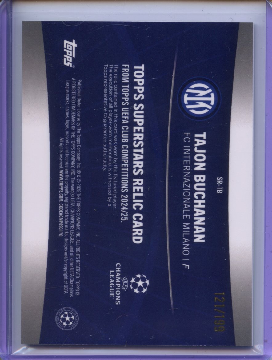 2024-25 Topps UEFA Club Competitions Tajon Buchanan Superstar Relics Neon Green Foilboard 121/199 #SR-TB