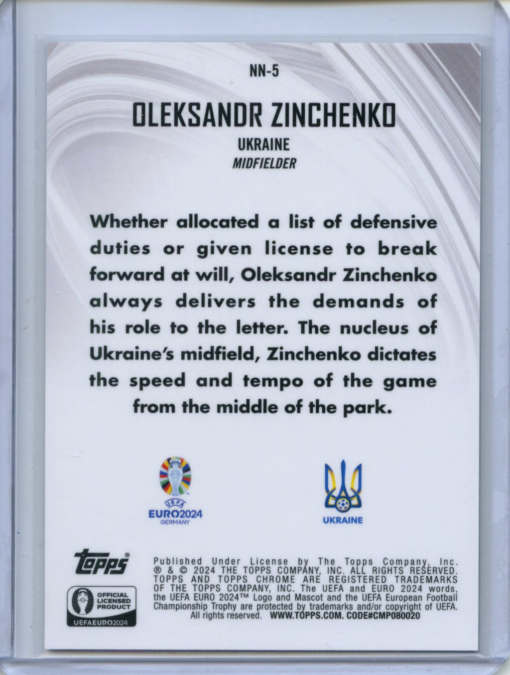 2024 Topps Chrome UEFA Euro Oleksandr Zinchenko Neon Nations Blue Wave 61/75 #NN-5