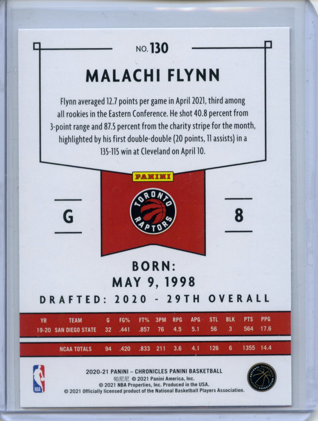 2020-21 Panini NBA Chronicles Malachi Flynn Panini #130