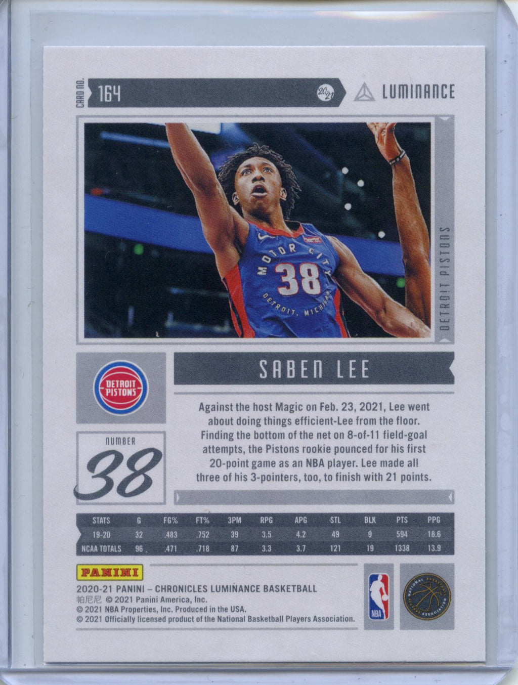 2020-21 Panini NBA Chronicles Saben Lee Luminance #164