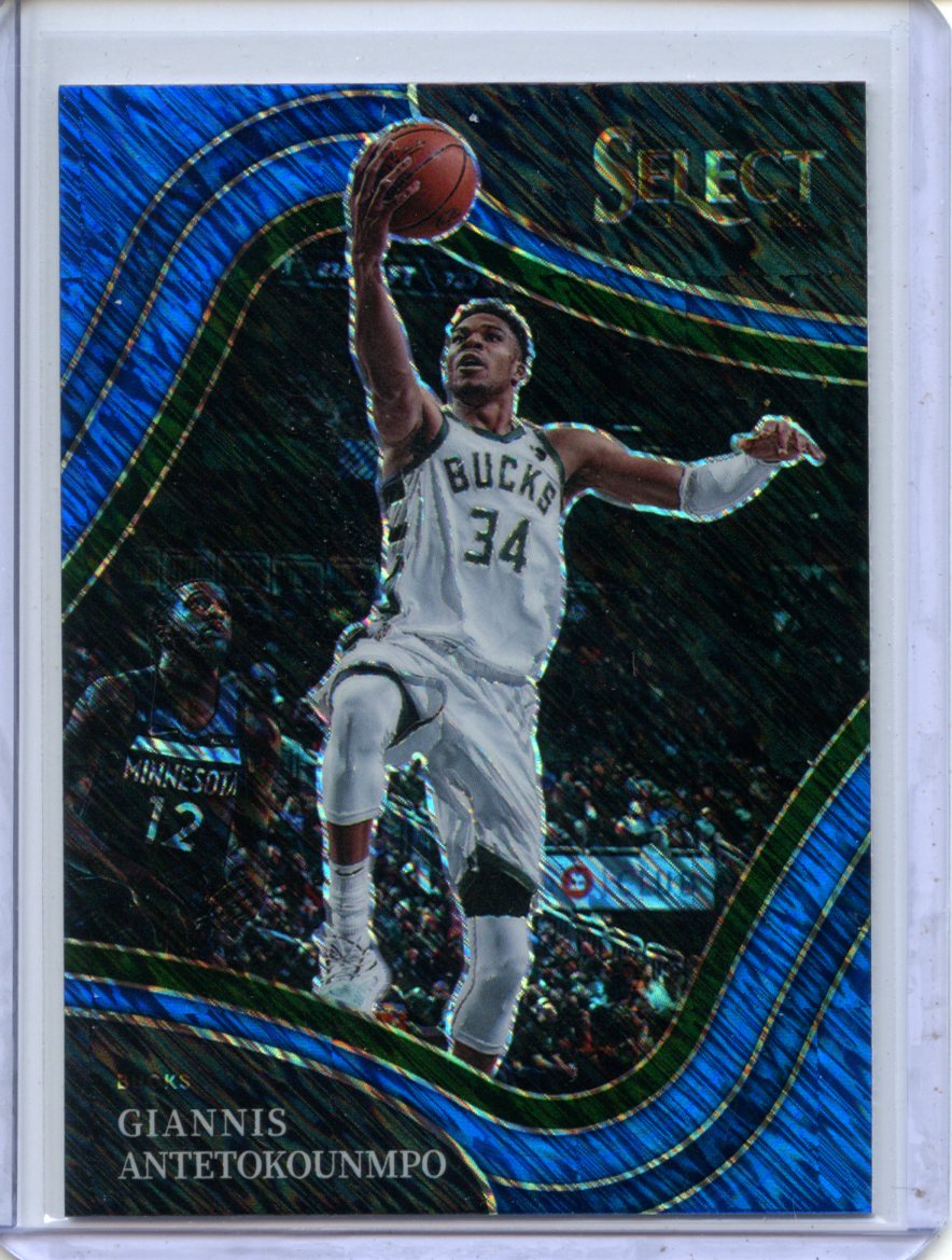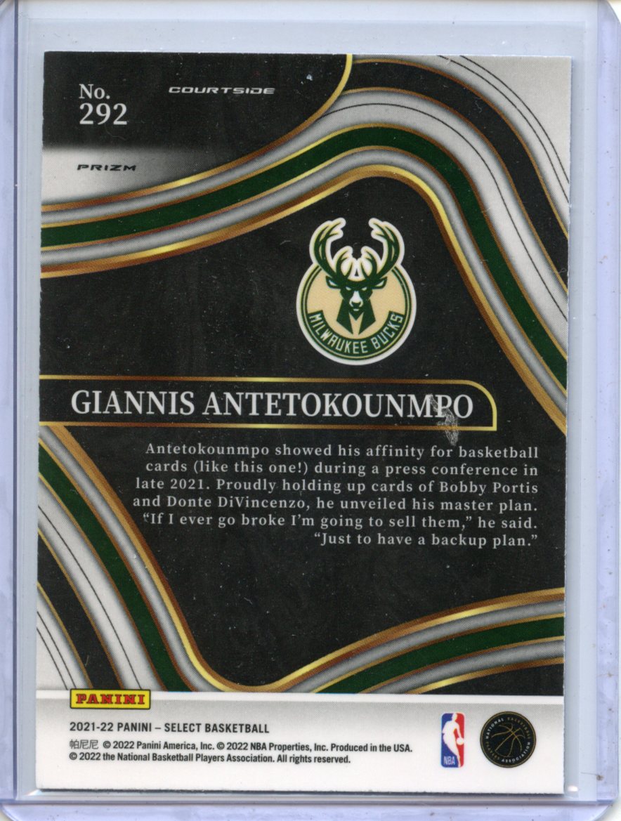 2021-22 Panini Select Giannis Antetokounmpo Courtside Shimmer Blue Prizms #292